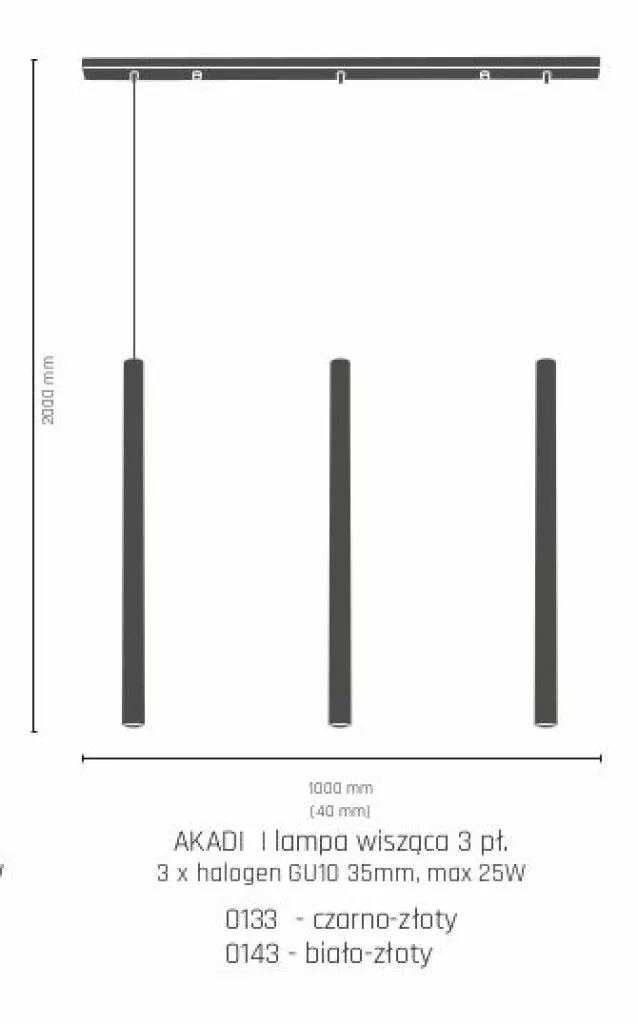 Źródło światła: 3 x 25 W MR11 GU10 (żarówki led 35mm z trzonkiem GU10)